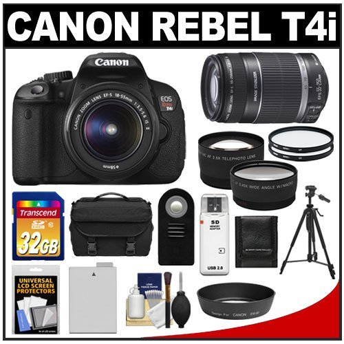 - <1> Canon EOS Rebel T4i Digital SLR Camera Body & EF-S 18-55mm IS II Lens + <2> Canon EF-S 55-250mm II IS Lens + <3> Transcend 32GB Class10 SD Card +